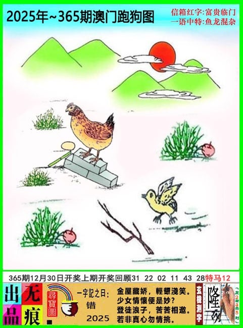 365期开奖时间2025年12月31 星期三)晚9:30开(农历十一月十二 狗冲龙)365期【欲钱买牛头马面的生肖】